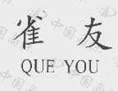 1997年9月28日,国家工商行政管理总局核准萧山市永裕物资贸易有限公司提出的“雀友QUEYOU”文字加拼音商标注册申请,注册号为1110578,核定使用类别为第28类:麻将。该商标续展注册有效期至2027年9月27日。2008年3月14日,经国家商标局核准该商标转让给松冈机电(中国)有限公司。2010年10月8日,国家工商行政管理总局商标局认定使用在商标注册用商品及服务国际分类第28类麻将商品上的“雀友QUEYOU”商标为驰名商标。