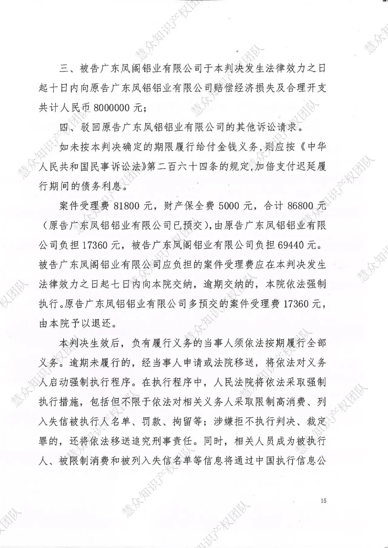 临沂判赔800万!辉知队代理“凤铝”商标维权案胜诉